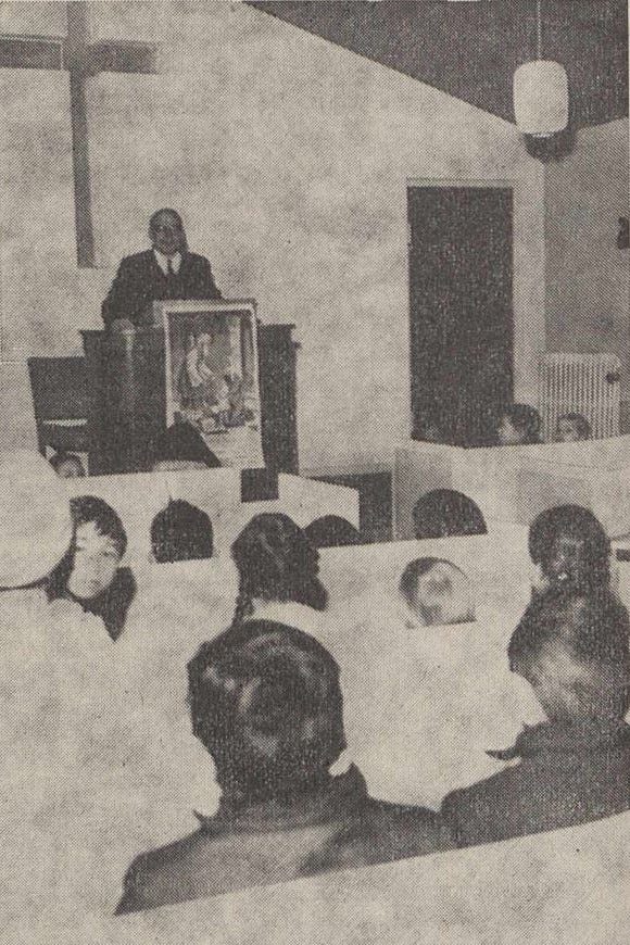 - J. M. Bucy, ‘New gallery fellowship day’, Northern Light, vol. 8, no. 1, January 1958, p. 1. https://documents.adventistarchives.org/Periodicals/NL/NL19580101-V08-01.pdf ↩︎