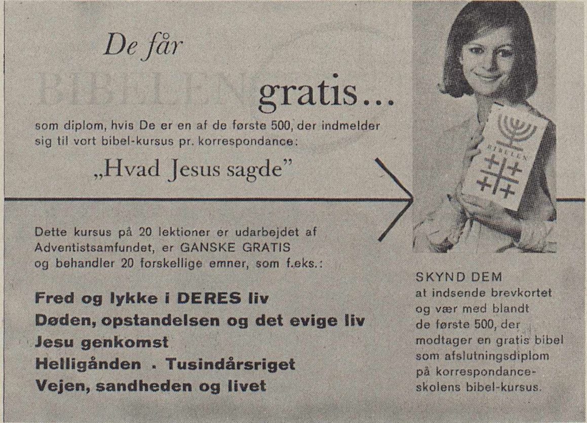 Modest as the actual numbers were, these were heady days. A Danish visitor to Greenland wrote in 1960 that Adventists were ‘without a doubt’ doing ‘the best and most energetic work’ out of the pool of new arrivals.91 In 1971, the chapel placed an advertisement in the bilingual Greenlandic and Danish newspaper Atuagagdliutit / Grønlandsposten for a 20-lesson course covering subjects such as death, the afterlife, Christ’s return, and the ‘Millennium’ (Christ’s thousand-year reign).92 The clinic was modernised and expanded that year, while the Sunday school remained as popular as ever.