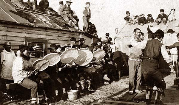 While Greenlandic women grappled with the generational loss of power, some pockets of Greenlandic society, particularly those involved in youth movements, were also grappling with the denigration of Inuit culture in favour of Danish ‘modernity’, and exploring ways to recover lost traditions. Starting in 1976, the Aasivik festivals (named after the aasiviit summer encampments where Inuit Greenlandic communities came together to trade and converse) were annual events held every summer up to 1996, featuring music and entertainment as well as political discussion.19 The Aasiviit unapologetically celebrated Inuit culture, encouraging young people to take up kayaking and other traditional skills that had fallen away, with the opening ceremony of the 1977 iteration, held in Qullissat on Disko Island, featuring drum dance performances by three East Greenlanders: Milíkka Kûitse, Gudrun Erdakm and Tobias Tukula. One of the organisers of the 1977 festival, Aqqaluk Lynge, lamented that ‘many Greenlanders were no longer interested in their own culture and traditions’ at the time; Aasivik was a way to give those traditions new vitality.20