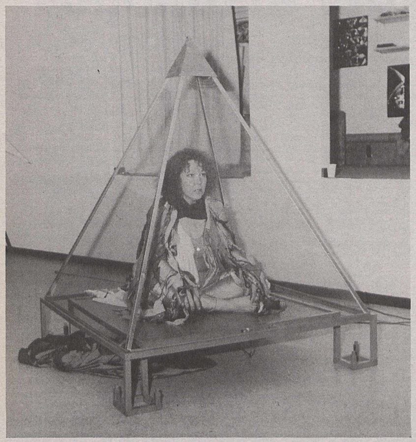 One of Silamiut’s productions, Aarit (Stop en Halv in Danish), which debuted in front of an audience of ‘several hundred’ at Nuussuaq Hall in Nuuk in 1989, follows an old angakkoq on a vision-journey around the modern world. After performing a drum dance, he approaches the Mother of the Sea, Sassuma Arnaa, who sits cross-legged within a glass pyramid, to ask if she would accompany him on his final expedition. She cannot, but she tells him to set off anyway. What the angakkoq sees troubles him deeply: terrified multitudes fleeing from war and bombs; widespread unrest; an imperious military general who bosses around the exhausted masses; and, in the final act, astronauts who are sent to patch up an ozone layer perforated by the emissions of humanity. Several times the angakkoq asks the Mother of the Sea to be relieved from his burdensome expedition, but each time she tells him to continue. The message of the play, if it was not already clear, is driven home by Sassuma Arnaa’s closing speech to the weary angakkoq: ‘You can decide for yourself what the world will look like. If you could have seen the world seven generations ahead, you wouldn’t have treated the world like this.’26